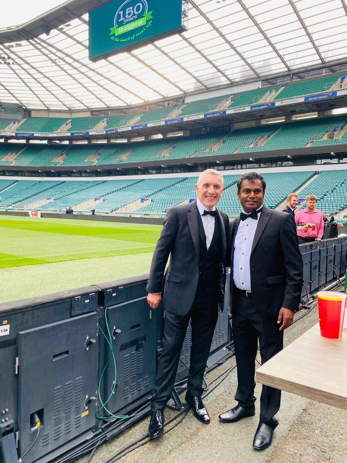 Mr. Stewart Gilliland, Mr. Mohan Palanisamy (Director of Samy Groups), Mr. John Allan (Chairperson Tesco), Ms. Allison Platt, Mr. Byron Grote, and Mr. Stewart Fenn had a fantastic time and talked about business expansion (Booker Sales Director) (Left to Right)